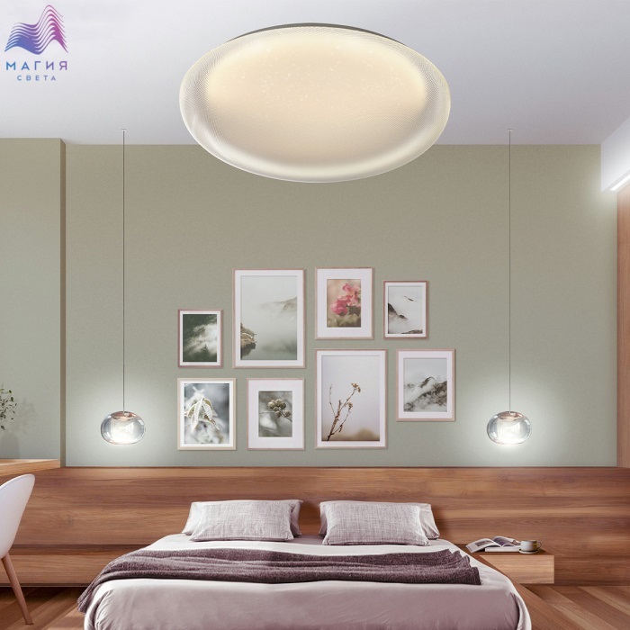 Светильник 7775/ELN из серии Сонекс Jolly. Материал: металл/пластмасса. Форма: круг. Светильник декорирован прозрачными точками, придающими включенному светильнику красивый эффект "звездного мерцания" и переливания. Степень защиты IP43. Переключатель температуры цвета (ССT) на драйвере, с помощью которого осуществляется изменение цветовой температуры 3000/4000/6000K.