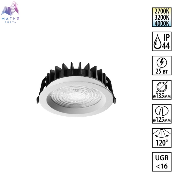 Встраиваемые светодиодные влагозащищенные (IP44) светильники Novotech FLUO. Можно выбрать цветовую температуру (2700/3200/4000 K). 2 цвета на выбор: черный или белый.