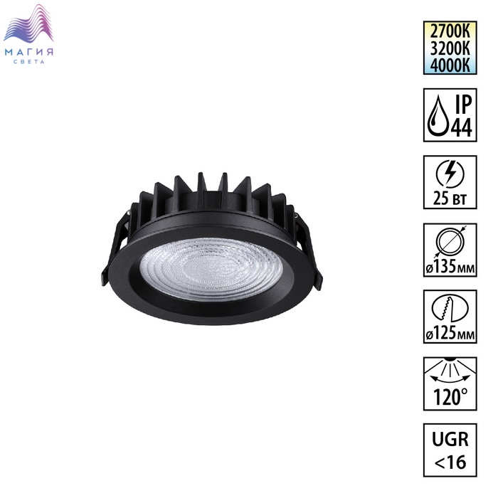 Встраиваемые светодиодные влагозащищенные (IP44) светильники Novotech FLUO. Можно выбрать цветовую температуру (2700/3200/4000 K). 2 цвета на выбор: черный или белый.