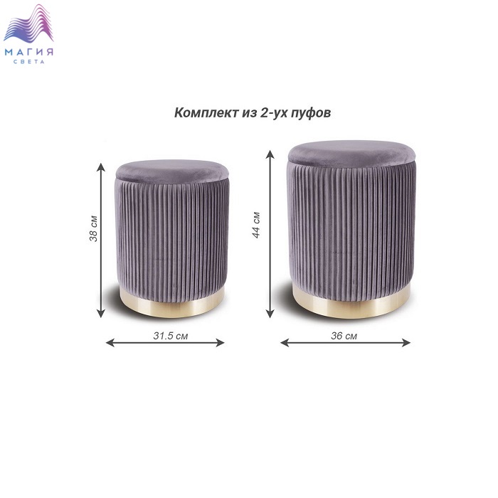 Габариты большого пуфика - 36x44 см, а малого - 31,5x38 см.