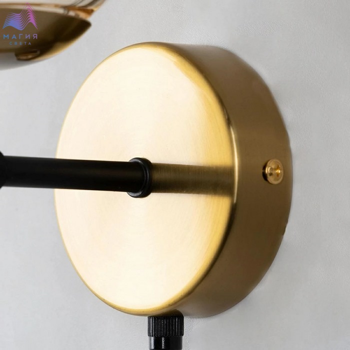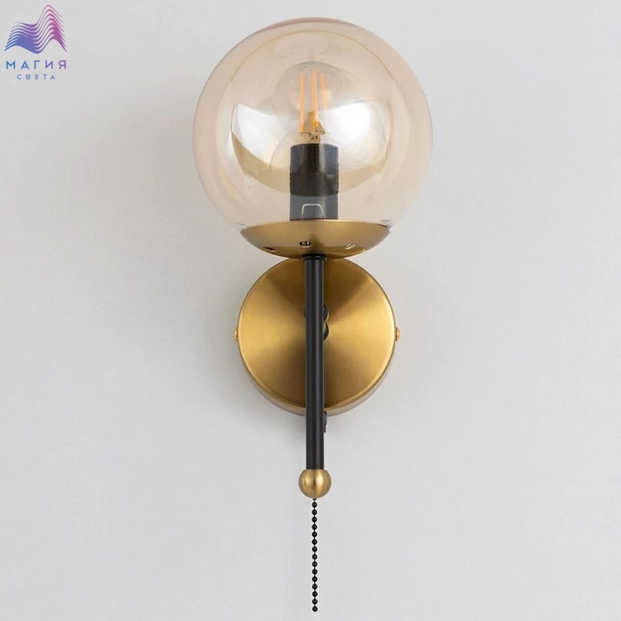 Бра Citilux Памела CL144315. Материал: металл/стекло. Цвет: черный/бронза/шампань. Плафон в форме шара. Выключатель-шнурок.