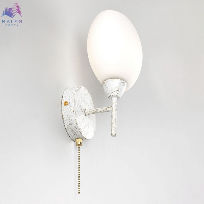 Бра Citilux Флорида CL148310. Материал: металл/стекло. Цвет: белый с золотой патиной/белый. На корпусе установлен выключатель.