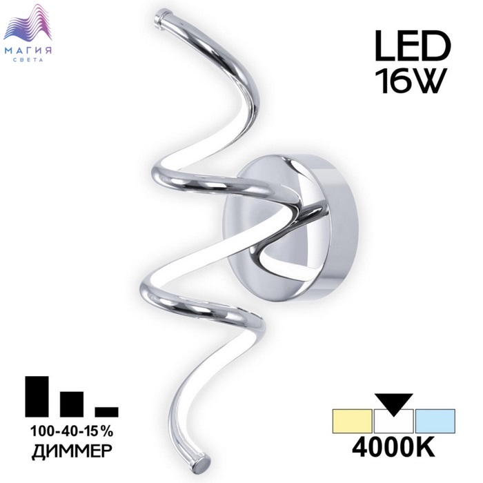 Настенный светодиодный светильник Citilux Джемини CL229331. Материал: металл/полимер. Цвет: хром/белый. Светодиодный модуль имеет форму изящно изогнутой спирали. Изделие оснащено встроенным ступенчатым диммером с тремя уровнями яркости 100-40-15%, управляется обычным настенным выключателем.