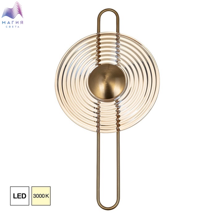 Светодиодное бра Citilux CORTA CL245011. Материал: металл/стекло. Цвет: бронза/шампань. Большой круглый ребристый плафон — из стекла оттенка шампань. Благодаря встроенным светодиодам с цветовой температурой 3000К бра светит мягким, равномерным светом.