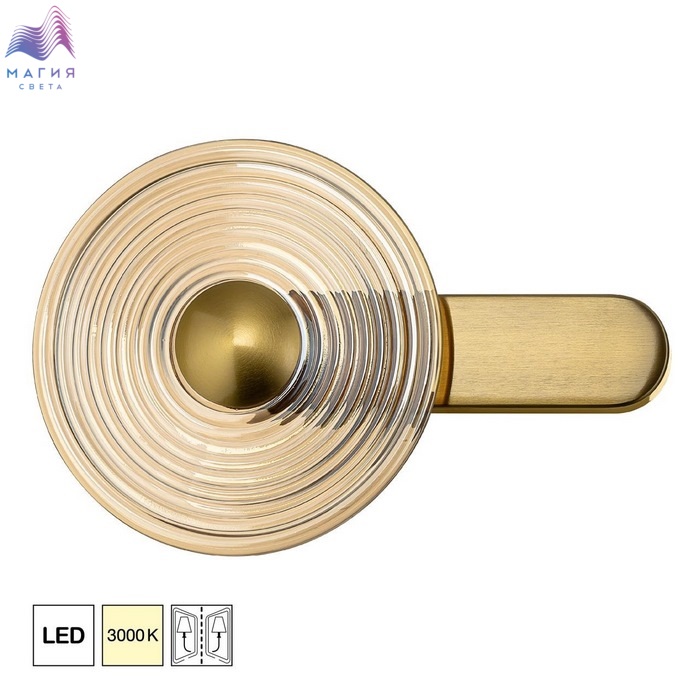 Светодиодное бра Citilux CORTA CL245023/ Материал: металл/стекло. Цвет: бронза/шампань. Большой круглый ребристый плафон — из стекла оттенка шампань. Благодаря встроенным светодиодам с цветовой температурой 3000К бра светит мягким, равномерным светом.