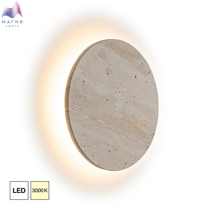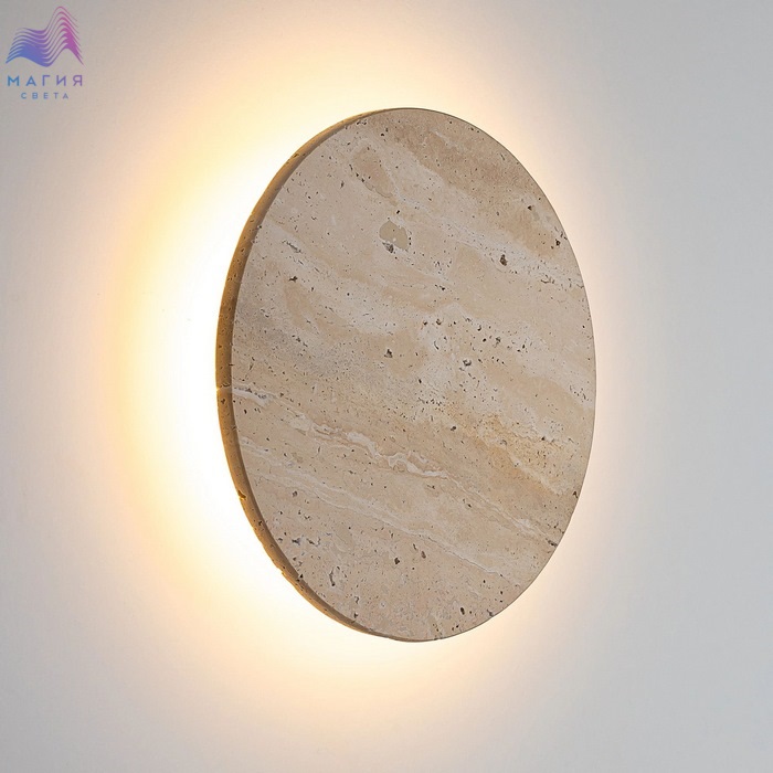 Светодиодный настенный светильник Citilux Mares CL246011. Материал: металл/травертин. Цвет: бежевый. Форма - круг.