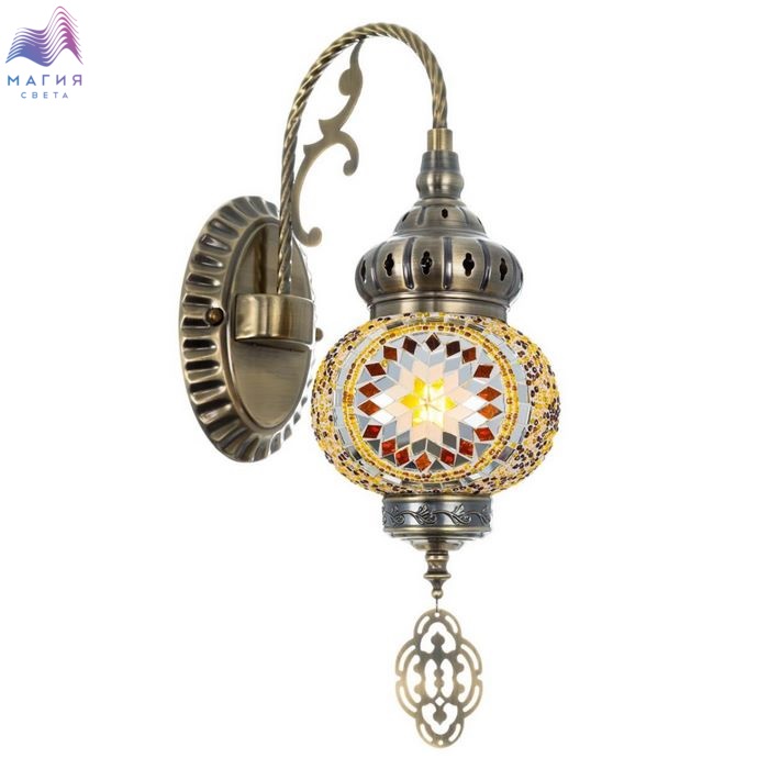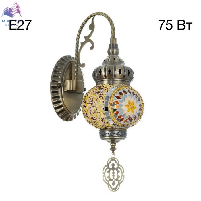 Бра Citilux Kair CL419315. Материал: металл/стекло. Цвет: бронза/янтарный. Плафон в форме шара, декорированный стеклянной мозаикой с янтарными оттенками.