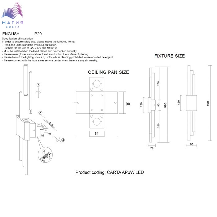 Артикул: CARTA AP6W LED WHITE/BRASS