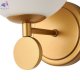 Серия Favourite Absolute исполнена в двух цветах: золоте и античное серебро. Рожки декорированы плоскими металлическими кругами. Плафоны в форме шара изготовлены из белого стекла. Рожки у подвесных люстр можно установить вверх или вниз плафонами.