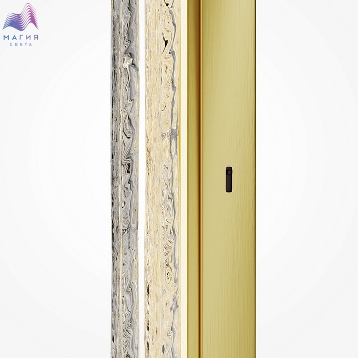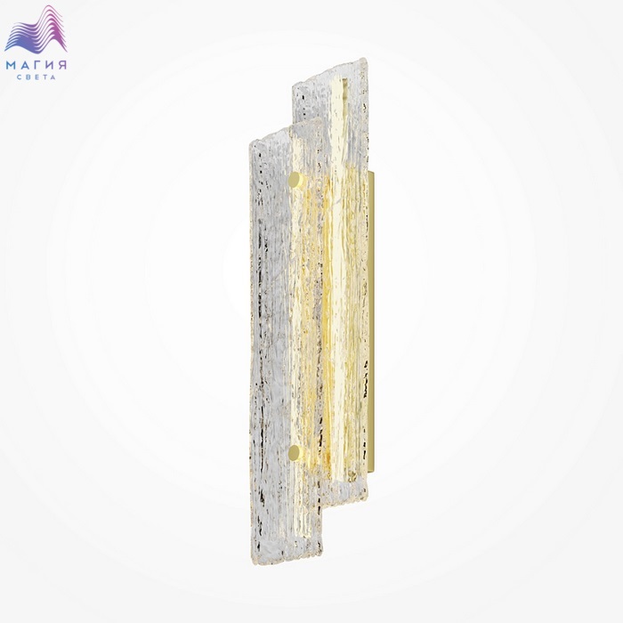 Серия Maytoni Frostum. Рельефное фактурное стекло ручной работы напоминает причудливые ледяные узоры. Металлическая арматура окрашена в цвет сатинированной латуни. Все модели оснащены встроенным LED-источником света с трехступенчатым переключателем цветовой температуры 2700-3000-4000К.