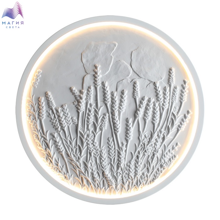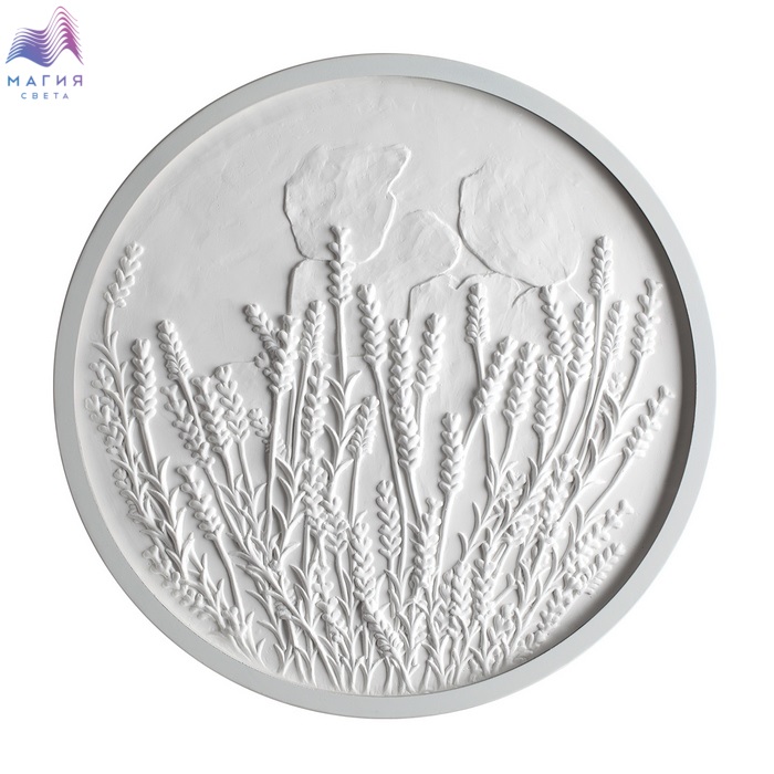 Odeon light Lavanda — светильник диаметром 400 мм, который был вдохновлён популярными в интерьерах ботаническими барельефами. Мягкая подсветка подчёркивает каждую травинку, создавая живую и тактильную атмосферу.