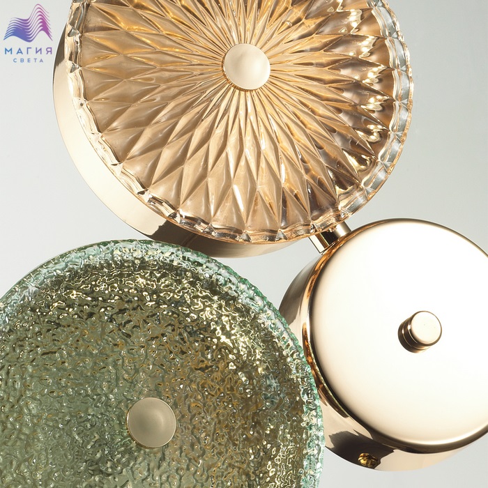 Коллекция Odeon light exclusive Caramella получила своё название благодаря сходству с карамельными конфетами. В ней сочетаются стекло нежных пастельных оттенков, золотой или хромированный металл, разнообразные паттерны стёкол и современный LED источник света.