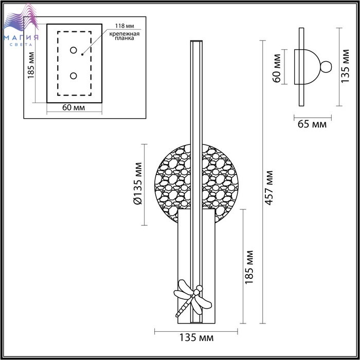 Стрекоза из металла, выполненная техникой литья, вносит нотку летнего настроения в минималистичный и строгий дизайн линии светильников Odeon light exclusive Strekoza. Декоративные рассеиватели в виде полусфер выполнены из натурального алебастра и подсвечиваются LED источником света с температурой свечения 3000К.