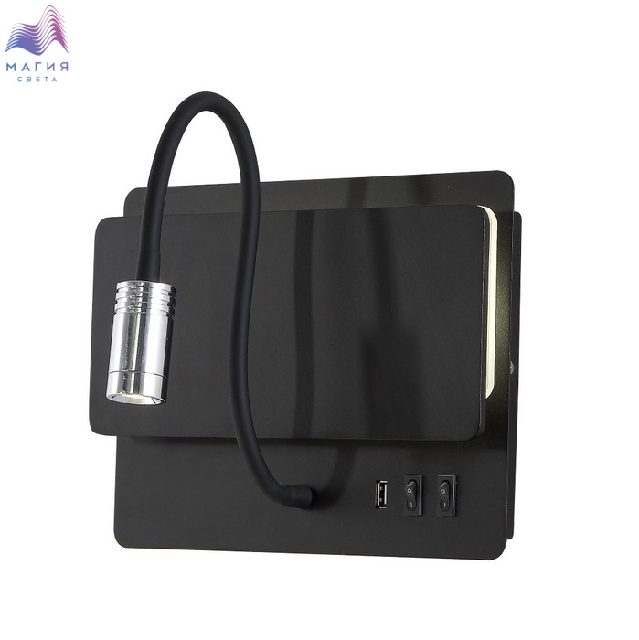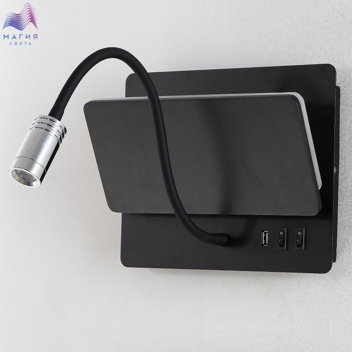 Бра оснащено USB портом и выключателями. Полочка раскладывается.
