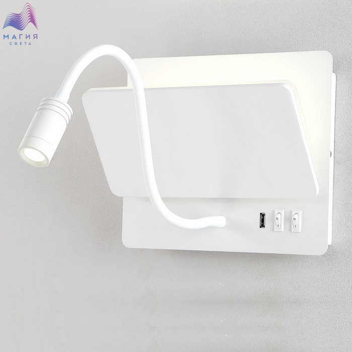 Бра оснащено USB портом и выключателями. Полочка раскладывается.