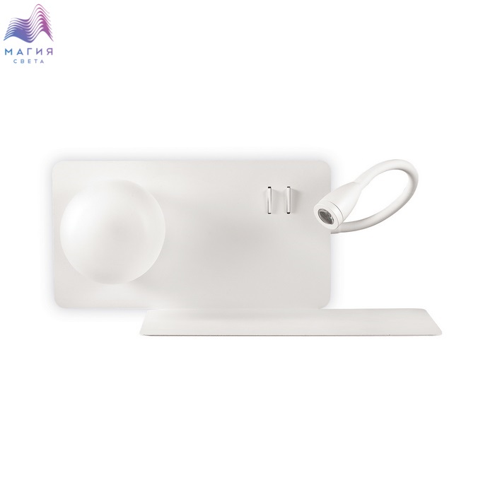 Новинка 2018 года - бра с полкой Ideal lux Book-2 AP2 Bianco 174822 - представлена на сайте интернет-магазина Магия света. USB выход.