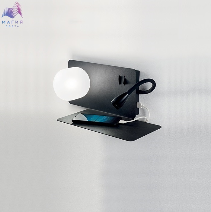 Новинка 2018 года - бра с полкой Ideal lux Book-2 AP2 Nero 174846 - представлена на сайте интернет-магазина Магия света. USB выход.