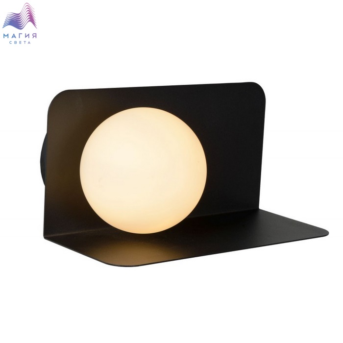 Настенные светильники с полкой стали неким трендом современного освещения. Корпус изготовлен из высококачественного металла. Плафон выполнен в форме шара из опалового стекла.