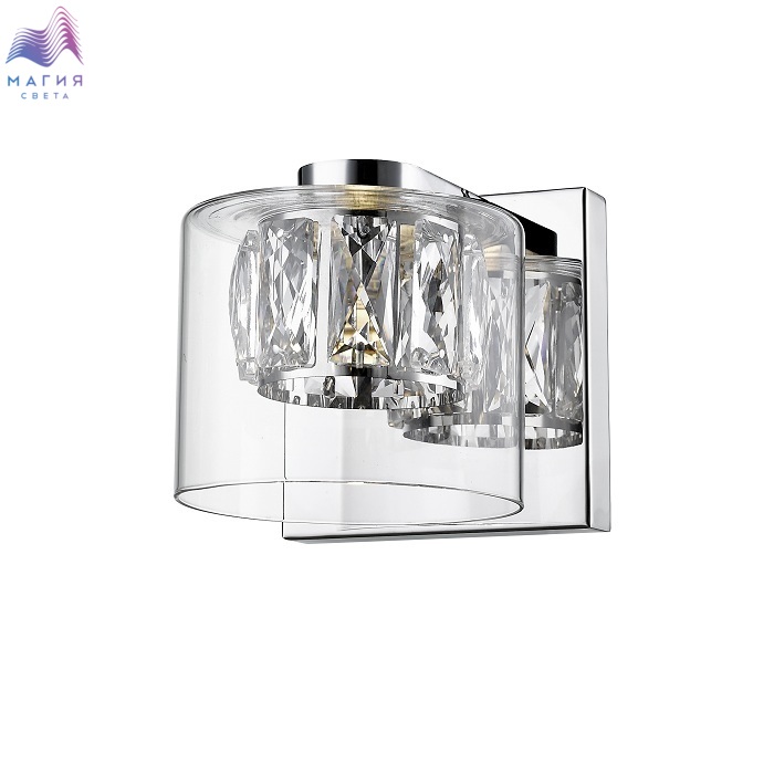 Бра Simple Story 1030-1WL из металла цвета хром, с плафоном из прозрачного стекла, с хрустальным элементом внутри.