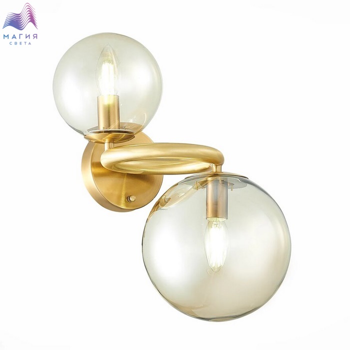 Серия светильников ST Luce Gorizia исполнена в латунном цвете. Металлический каркас в форме кольца дополнен стеклянными плафонами коньячного цвета, которые создают теплое свечение. Высоту подвесов можно отрегулировать при монтаже.