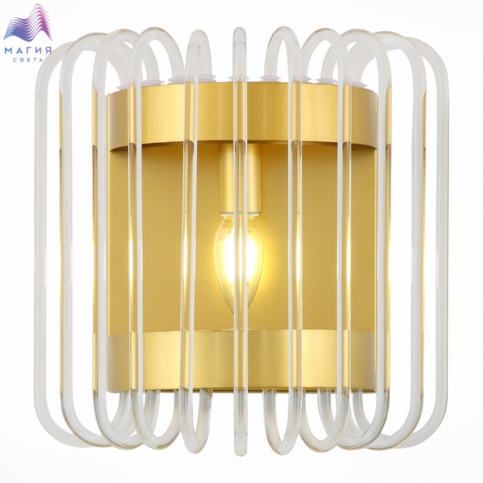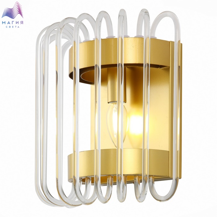 Изюминкой коллекции светильников ST luce Grosseto являются изогнутые стеклянные трубочки, которые огибают арматуру, создавая плавный, обтекаемый контур. Металл окрашен в цвет матовое золото и добавляет дизайну теплоты и изысканности.