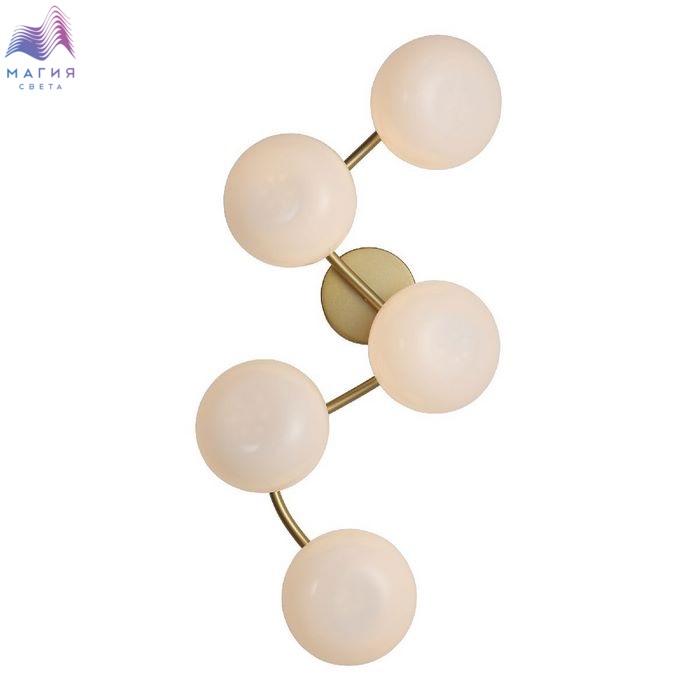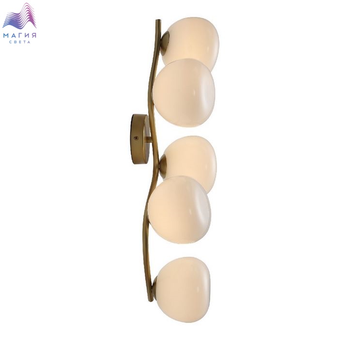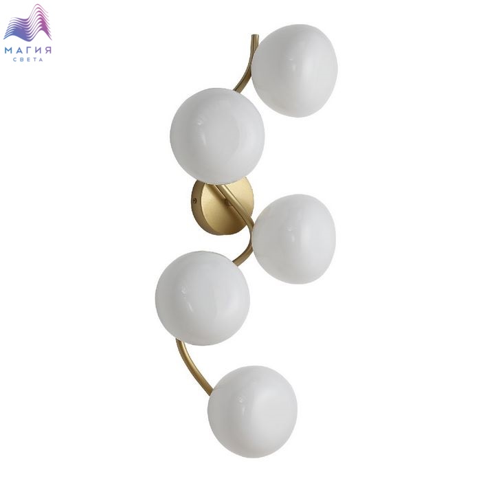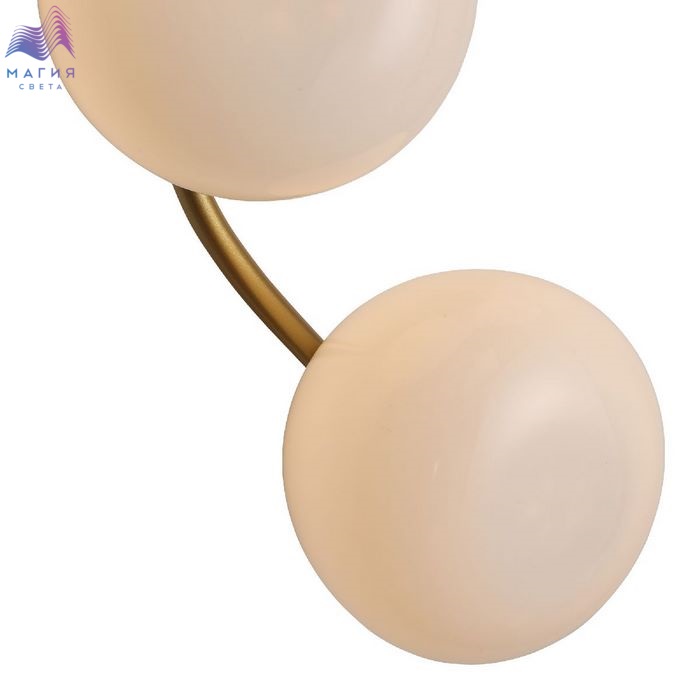 Серия ST luce Sweven отличается плавными изгибами и шарообразными плафонами необычной формы, напоминающие мыльные пузыри. Каркас цвета латуни, плафоны - молочного цвета.