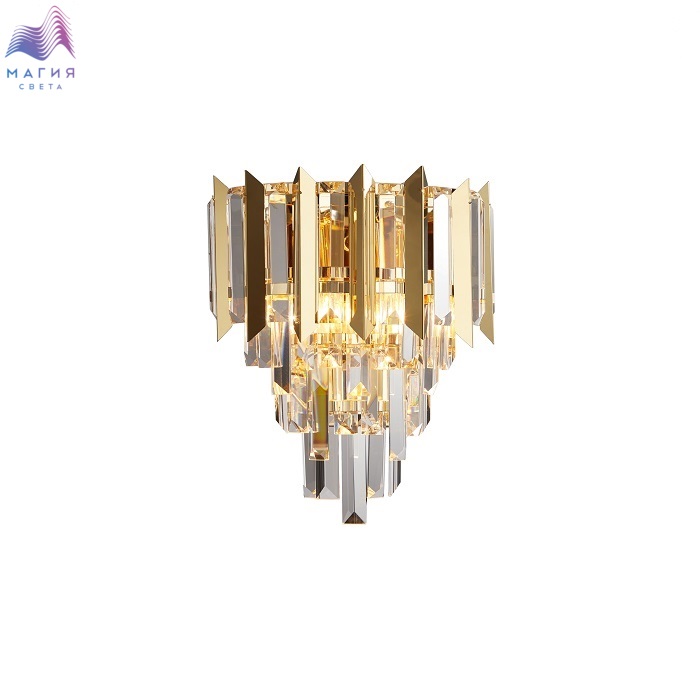 Светильник настенный хрустальный 1024/03/02W Stilfort серии Amman выполнен в классическом стиле. Арматура изготовлена из окрашенного металла в цветовом исполнении "золото". Светильник украшен хрустальными декоративными подвесными элементами.