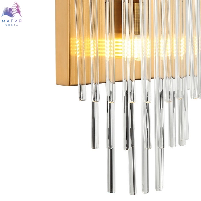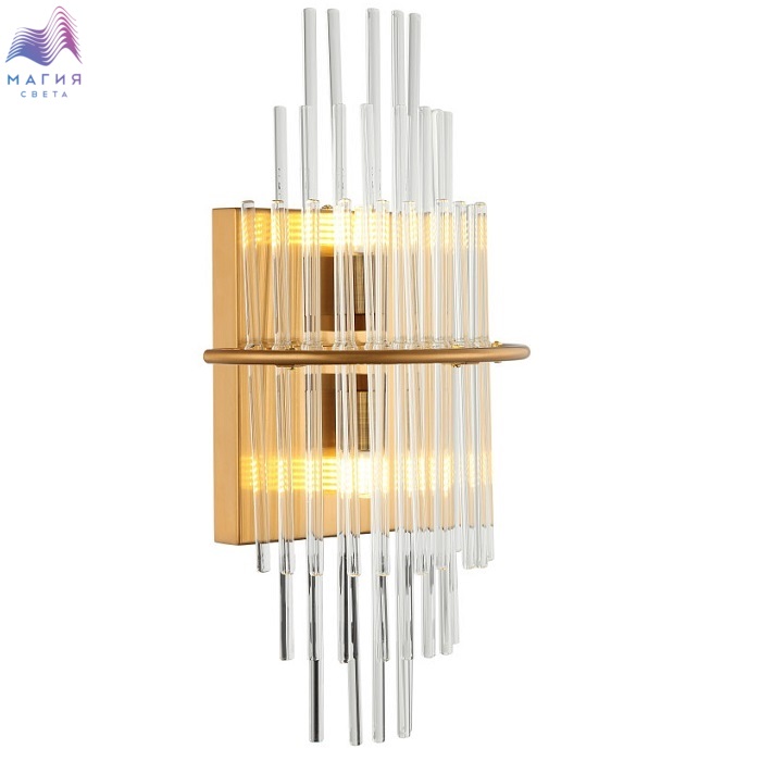 Светильник настенный хрустальный 2108/00/01W stilfort серии Eclipse выполнен в стиле модерн. Арматура изготовлена из окрашенного металла в цветовом исполнении "латунь". Светильник украшен хрустальными декоративными элементами.