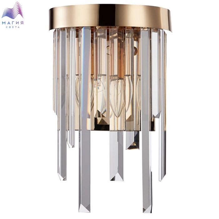 Светильник настенный хрустальный 2113/03/02W Stilfort серии Venecia выполнен в стиле модерн. Арматура изготовлена из окрашенного металла в цветовом исполнении "золото". Светильник украшен хрустальными подвесными декоративными элементами.