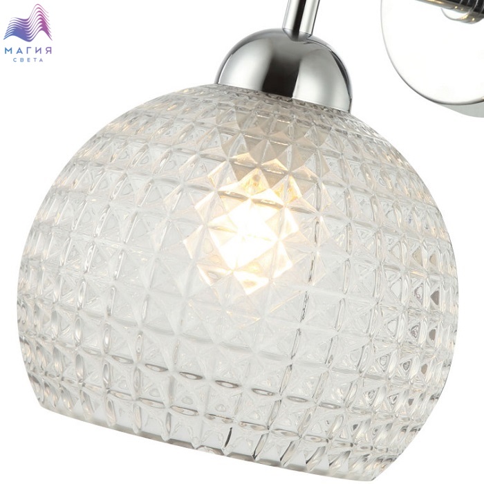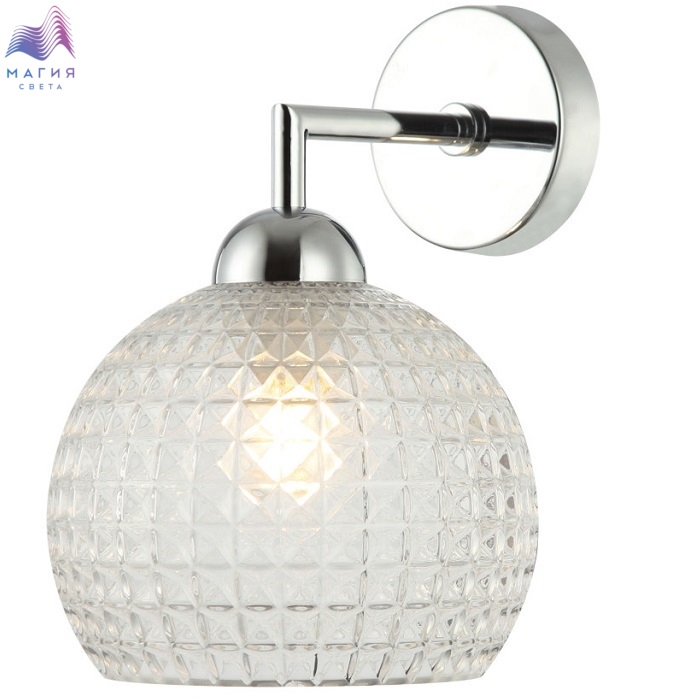 Светильник настенный 2118/09/01W Stilfort серии Frency выполнен в стиле модерн. Арматура изготовлена из окрашенного металла в цветовом исполнении "хром". Плафон из текстурированного стекла.