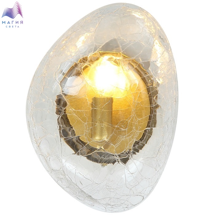 Настенные светильники Stilfort Cosmik отличаются необычной формой плафона. Абажур исполнен в трех цветах: прозрачном, дымчатом и шампани. Стекло с эффектом кракле выглядит потрясающе красивым.