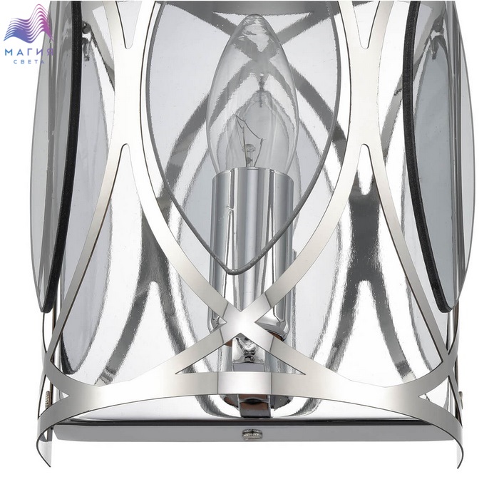 Серия Vele Luce Angela отличается оригинальным узором каркаса. Стеклянные тонированные вставки дополнительно отражают свет ламп, мягко рассеивая его. Гармоничное переплетение хромированного металла цвета хром усиливает блеск.