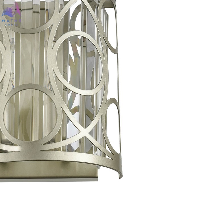 Серия Vele Luce Riccio исполнена в благородном цвете "шампань". Металлический каркас декорирован причудливыми завитками, добавляющими образу светильников игривость. Стеклянные элементы скрыты внутри металлического плафона. Данная коллекция станет отличным вариантом освещения спальни, гостиной или прихожей.