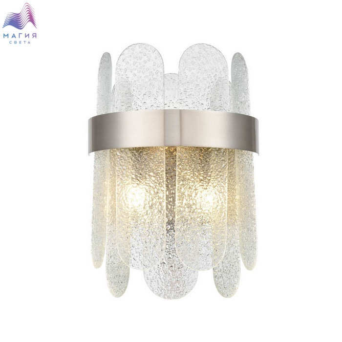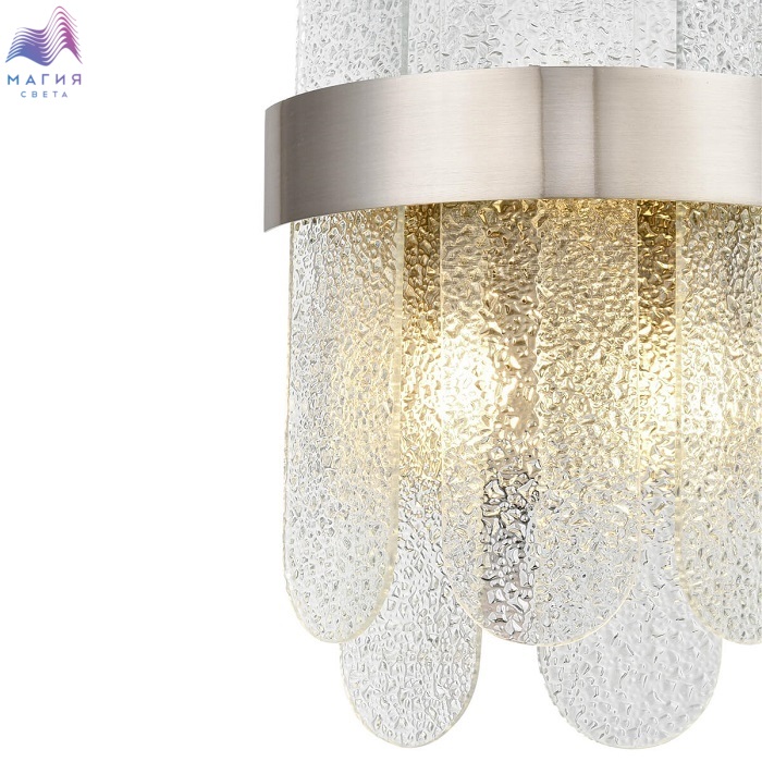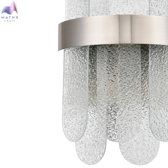 Необычная коллекция Vele Luce Delizia понравится ценителям стиля "современная классика". Гладкая лента каркаса цвета "сатин никель" дополнена овальными пластинами из фактурного стекла.