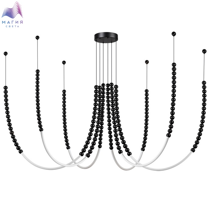 Odeon light Monella — оригинальная форма большой серии светильников в легком игривом дизайне с использованием черных полированных шариков из акрила. В светильнике используются оргинальные фиксаторы к потолоку в виде россыпи маленьких металлических шариков, которые можно расположить на любом удалении от центра светильника и, таким образом, создать свою форму.