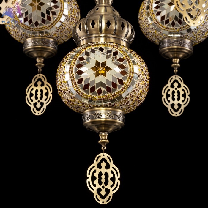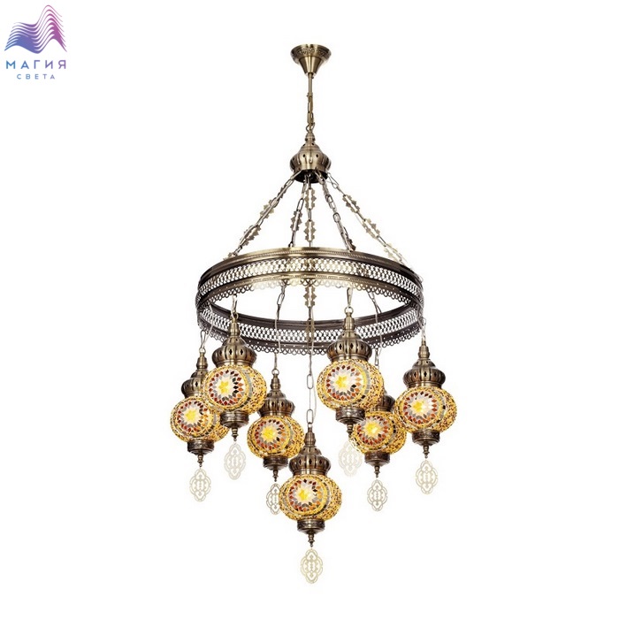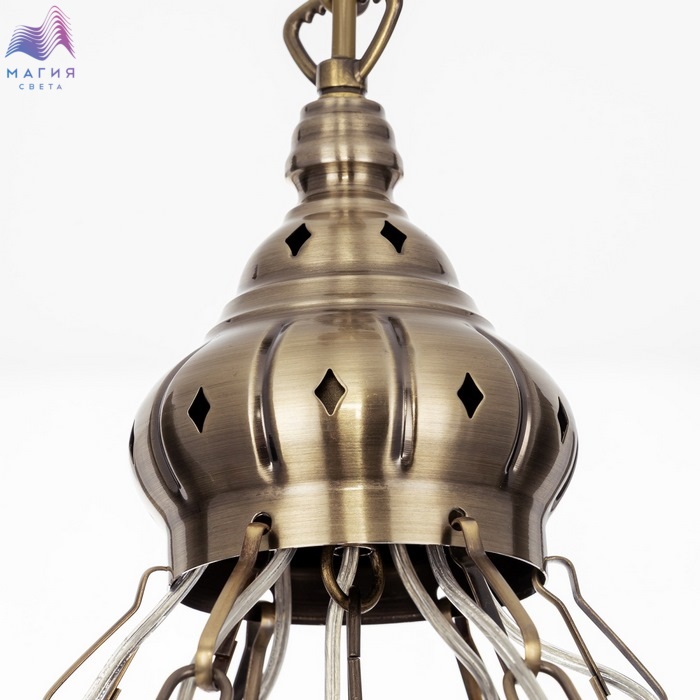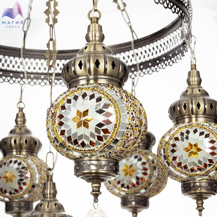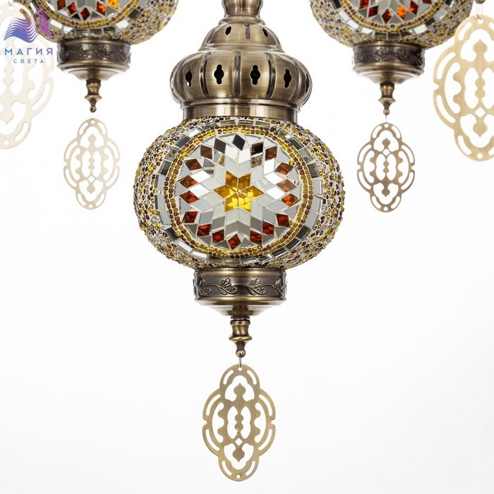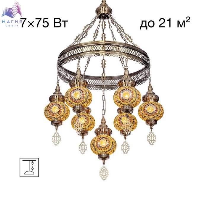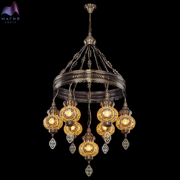 Подвесная люстра Citilux Каир CL419165. Материал: металл/мозаичное стекло. Цвет: бронза/янтарный. Семь плафонов в форме слегка приплюснутых шаров.