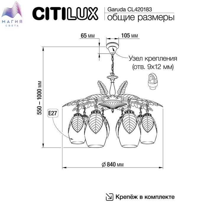 Подвесная люстра Citilux Garuda CL420183. Материал: металл/стекло. Цвет: бронза/шампань. Декоративные элементы имеют оригинальный экзотический характер. Цвет тёмной состаренной бронзы идеально сочетается с плафоном из прозрачного стекла светло-янтарного оттенка.