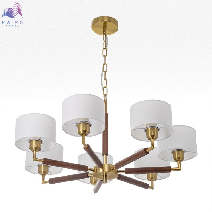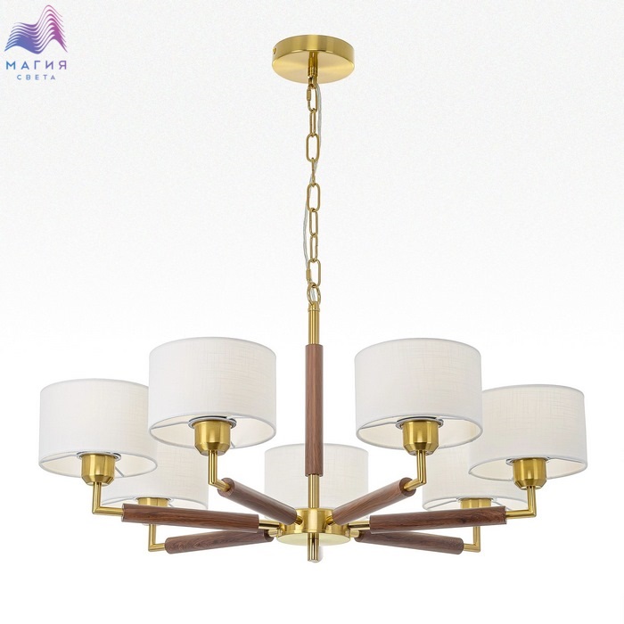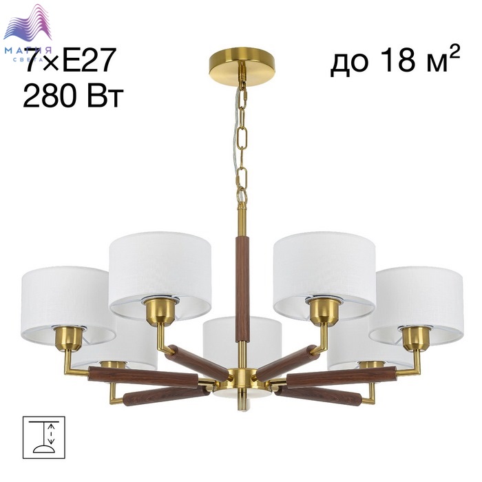 Подвесная люстра Citilux SHERMAN CL436172. Материал: металл/текстиль. Цвет: бронза/венге/молочно-белый. Семь рожков с абажурами в форме цилиндра, изготовленных из молочно-белой ткани с чуть шероховатой текстурой. Высота подвеса регулируется.