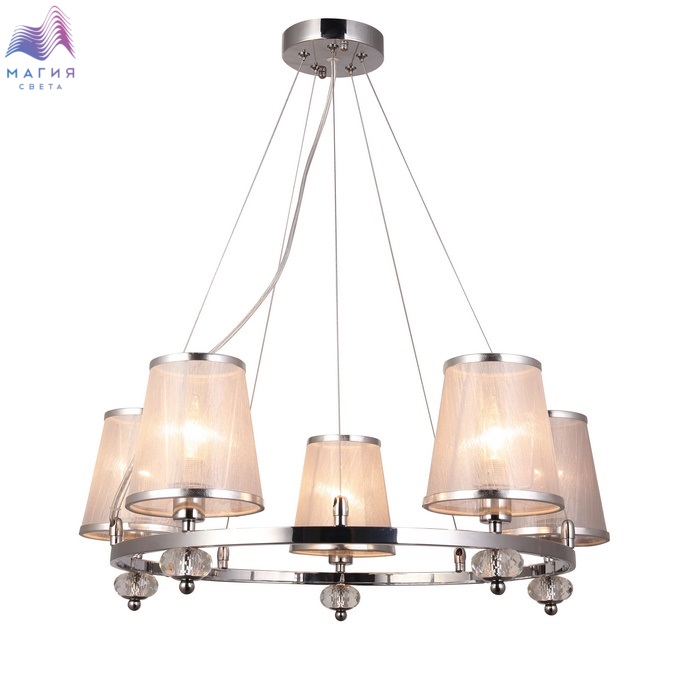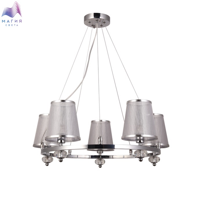 Коллекция F-Promo Argus исполнена в цвете хром. Люстры и бра из данной коллекции могут вписаться как в классический, так и современный интерьер. Хрустальные декоративные элементы представлены в виде многогранных кристлалов. Плафоны из полупрозрачной серой органзы дополнены серебристой тесьмой.