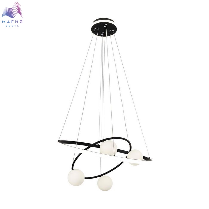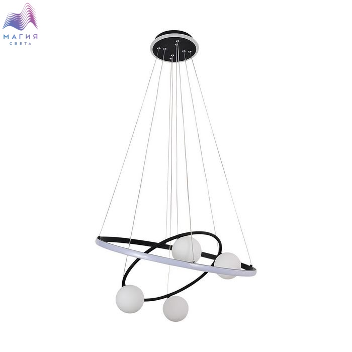 Светильники F-Promo Orbium сочетают в себе две технологии современного освещения - кольцо со встроенной лентой LED переплетается с кольцом из металлической трубки, в которую инсталлированы плафоны в виде шара. Потолочное основание также оформлено лентой LED по кругу. Светильники оснащены пультом ДУ, который позволяет менять как мощность, так и цветопередачу светильников. Три цветовых решения позволяет подобрать оптимальный светильник.