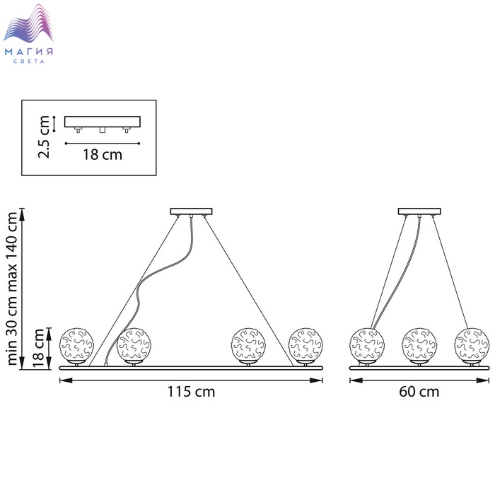 Высота без подвеса (мм) 180