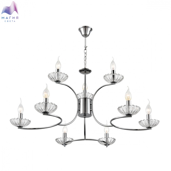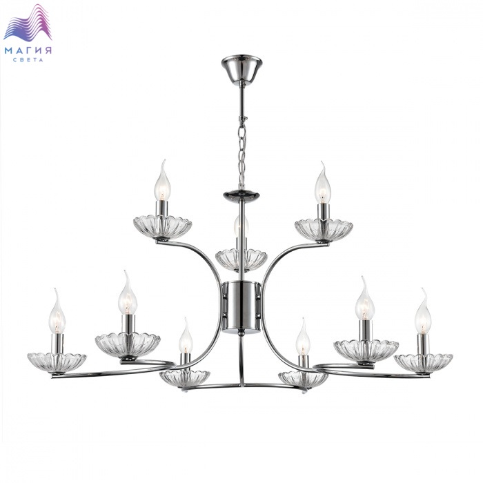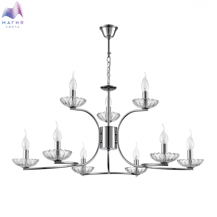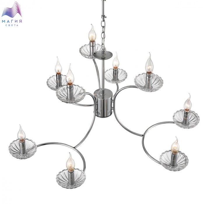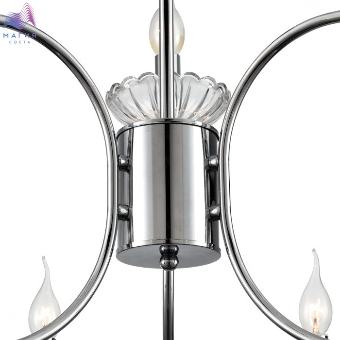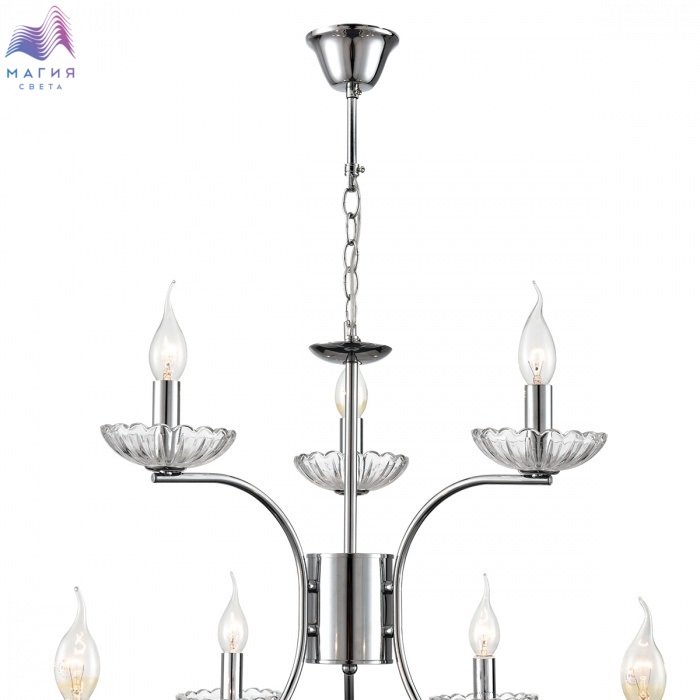 Классическая люстра Lumion Lolina оригинального лаконичного дизайна прекрасно украсит помещение с высокими потолками. Два уровня ламп визуально еще больше поднимают высоту потолка. Стеклянный декор имитирует розетку подсвечника.