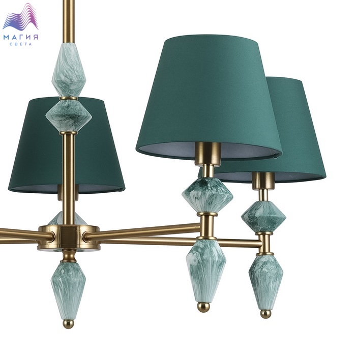 Коллекция светильников Lumion Vermont поражает изысканным керамическим декором, имитирующим малахит. Малахитовая керамика сочетается с зеленым цветом плафонов и и арматурой в благородном латунном цвете.