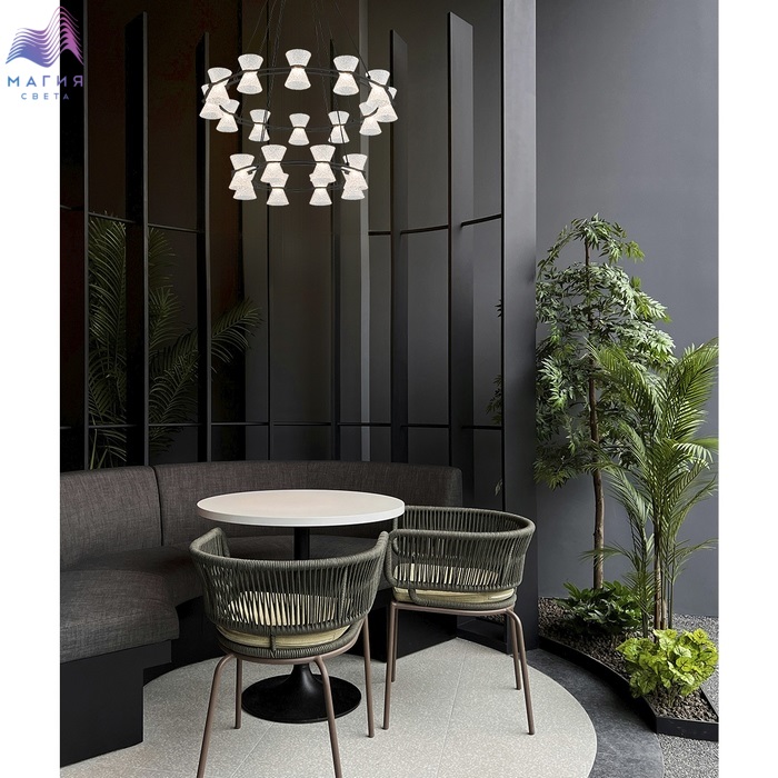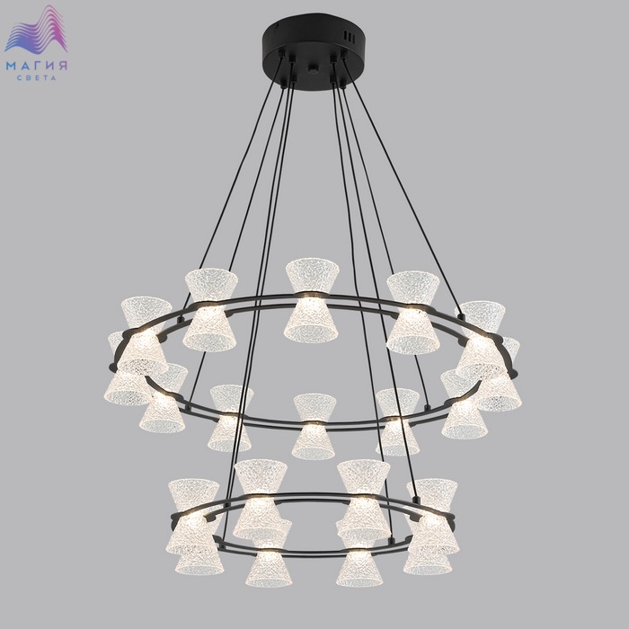 Воздушная, легкая модель Lumion Vinora станет заметным предметом интерьера. Прозрачные "плафоны- стаканчики", изготовленные из акрила, мягко рассеивают свет. Тонкие основания-кольца и вертикальные тросы поддерживают легкость всей конструкции, не утяжеляя ее.