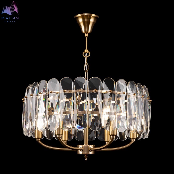 Утонченная серия подвесных светильников серии Maytoni Suite - новинка каталога 2021 года. Форма модели, даже без включенного источника света, делает ее центром притяжения и восторженных взглядов. Но стоит зажечь лампы, и пространство наполняется незабываемой игрой света, создаваемой овальными лепестками из стекла, инкрустированными в латунную основу.