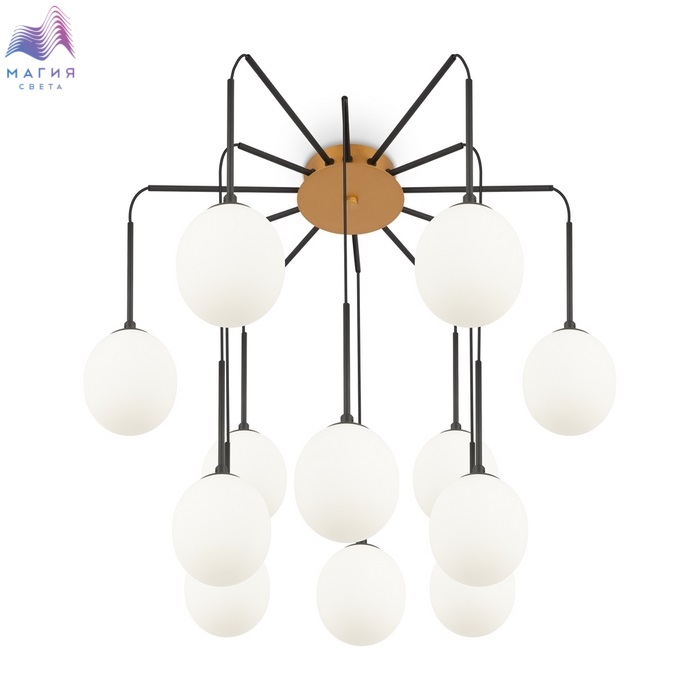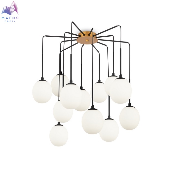 Подвесная люстра Maytoni Branch - отличный вариант для освещения гостиной, кухни или спальни, исполненных в современном стиле. Металлическое основание золотого цвета дополнено черными проводами, на которых расположены стеклянные шары-плафоны белого цвета.