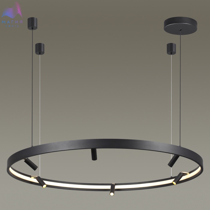 Подвесные люстры Odeon light Fonda отличаются минималичным стилем и функциональностью. Модели представлены в двух диаметрах (1000 мм и 600 мм). В подвесах используется два источника света - круглая LED подсветка по диаметру подвесов и регулируемые LED споты с изящным золотым декором. В светильниках используется два вида крепления: на основной чаше и на дополнительных креплениях, также входящих в комплект.
