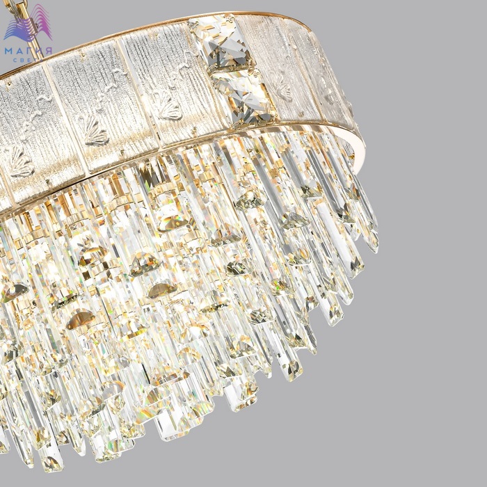 Серия Odeon light Fiesta — это красивое сочетание фактурного экстра белого стекла, вставок из высококачественного хрусталя и хрустальных подвесок. Использование стекла с растительными мотивами придает моделям особую утонченность. Люстры в 3-х диаметрах 50 cм, 60 cм, 80 cм, овальный светильник длиной 100 см и бра объединены в прекрасную коллекцию, которой можно осветить большое помещение в одном стиле.