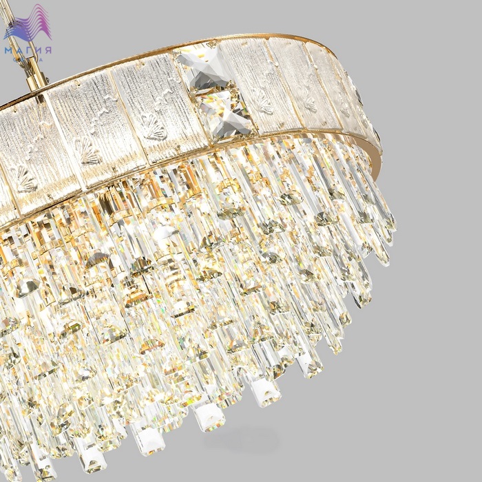 Серия Odeon light Fiesta — это красивое сочетание фактурного экстра белого стекла, вставок из высококачественного хрусталя и хрустальных подвесок. Использование стекла с растительными мотивами придает моделям особую утонченность. Люстры в 3-х диаметрах 50 cм, 60 cм, 80 cм, овальный светильник длиной 100 см и бра объединены в прекрасную коллекцию, которой можно осветить большое помещение в одном стиле.