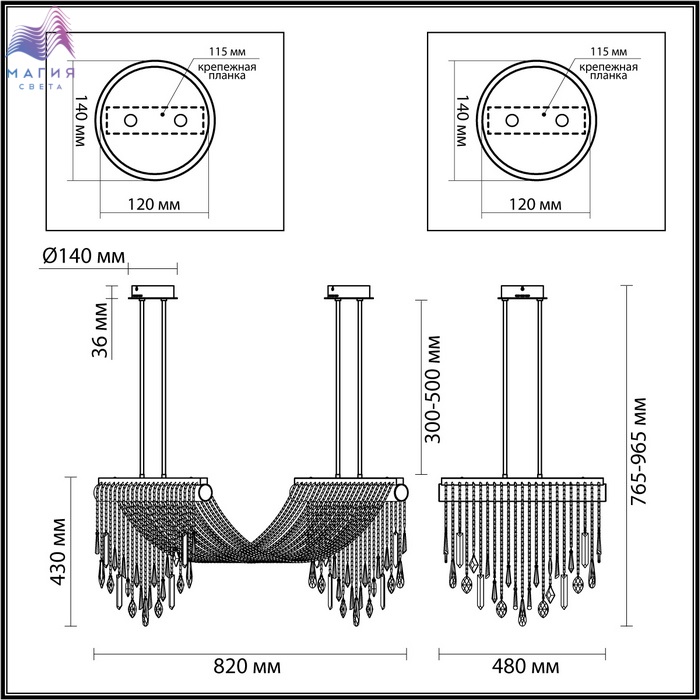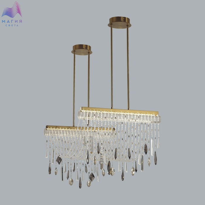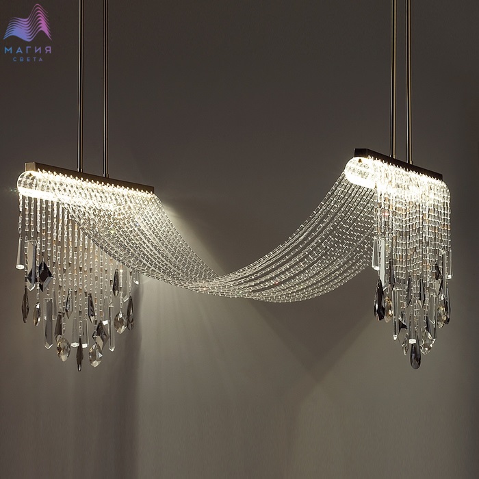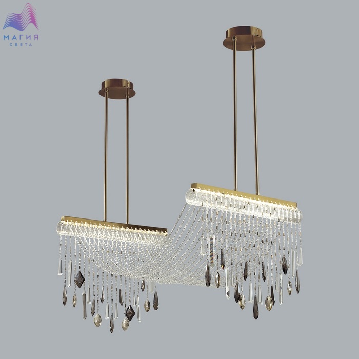 Odeon light exclusive Afina - серия светильников, обильно декорированная хрустальными нитями. В моделях LED-источник света с цветовой температурой 3000K. В люстре предусмотрено два варианта высоты на выбор - 765 мм, либо 965 мм, высота изменяется с помощью установки штанги нужной длины. Плафон, через который перекинуты хрустальные нити - из прозрачного стекла.